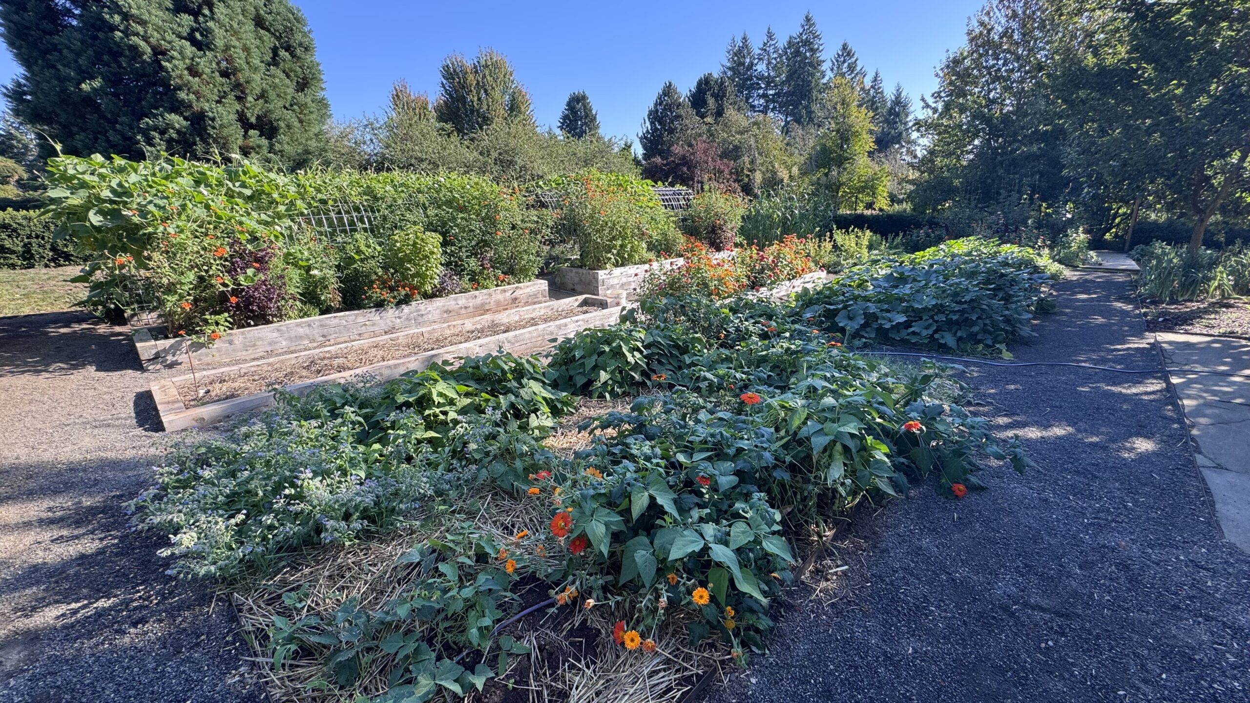 A view of the vegetable and flower garden on the Rehnborg farm in Oregon.